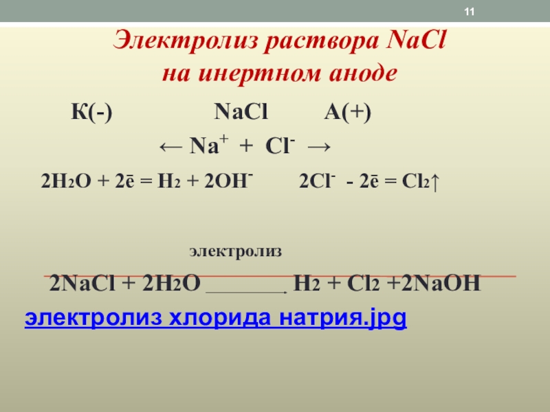 2Н2О + 2ē = H2 + 2OH- 2Cl- - 2ē = Cl2↑