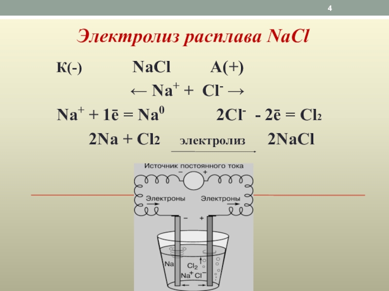 Na+ + 1ē = Na0 2Cl- - 2ē = Cl2