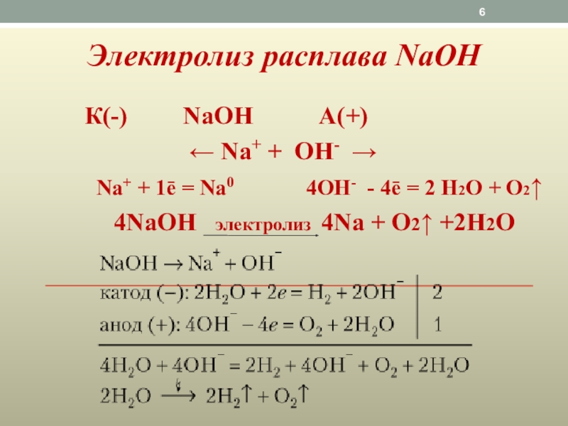 4NaOH электролиз 4Na + O2↑ +2H2O