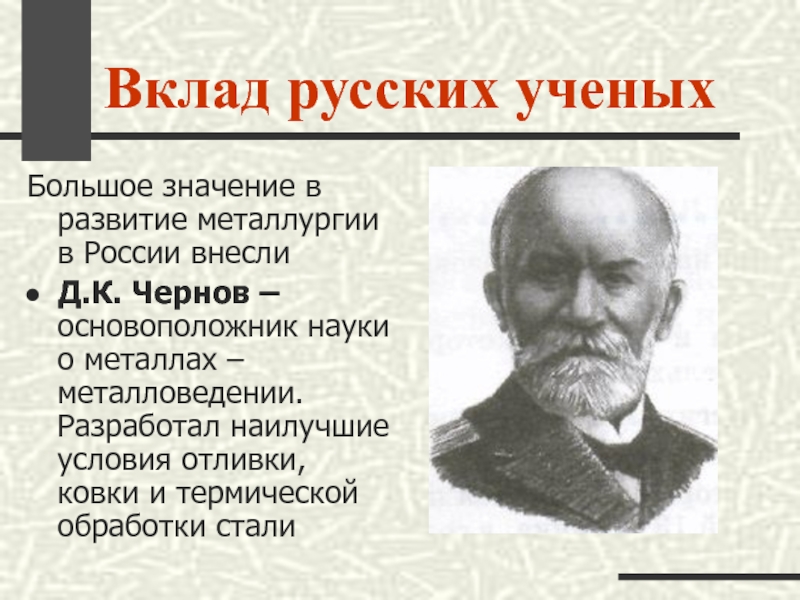 – основоположник науки о металлах – металловедении. Разработал наилучшие условия отливки, ковки и термической обработки стали