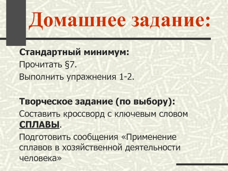 Подготовить сообщения «Применение сплавов в хозяйственной деятельности человека»