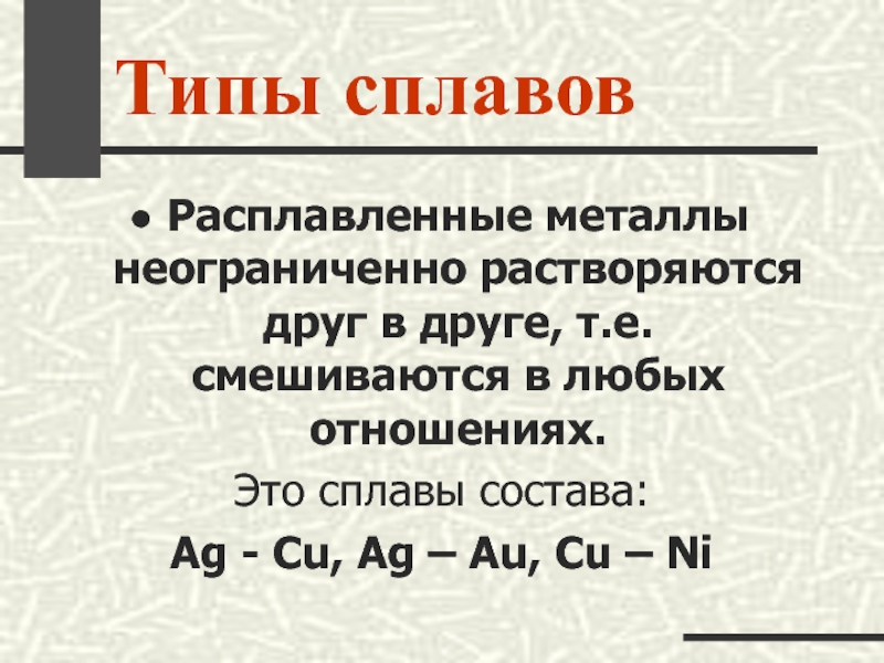 охлаждении образуют сплав, состоящий из мельчайших отдельных кристалликов каждого из металла
