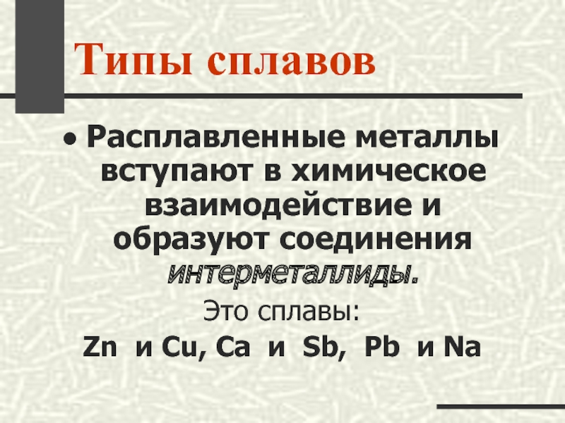 Расплавленные металлы вступают в химическое взаимодействие и образуют соединения интерметаллиды.