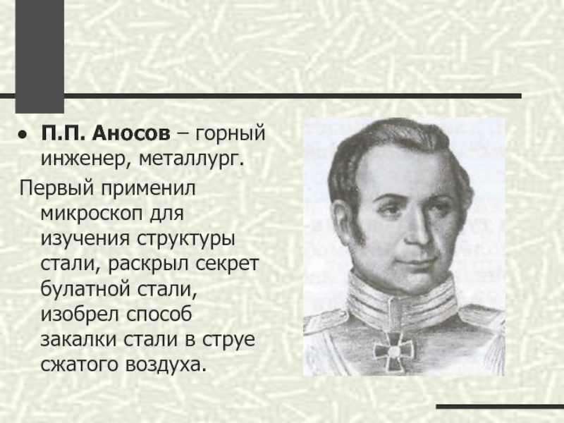 Слайд 21П.П. Аносов – горный инженер, металлург.