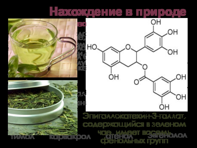 Эпигаллокатехин-3-галлат, содержащийся в зеленом чае, имеет восемь фенольных групп