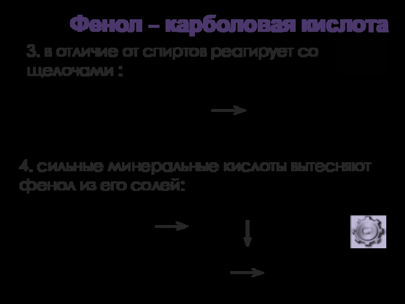 4. сильные минеральные кислоты вытесняют фенол из его солей: