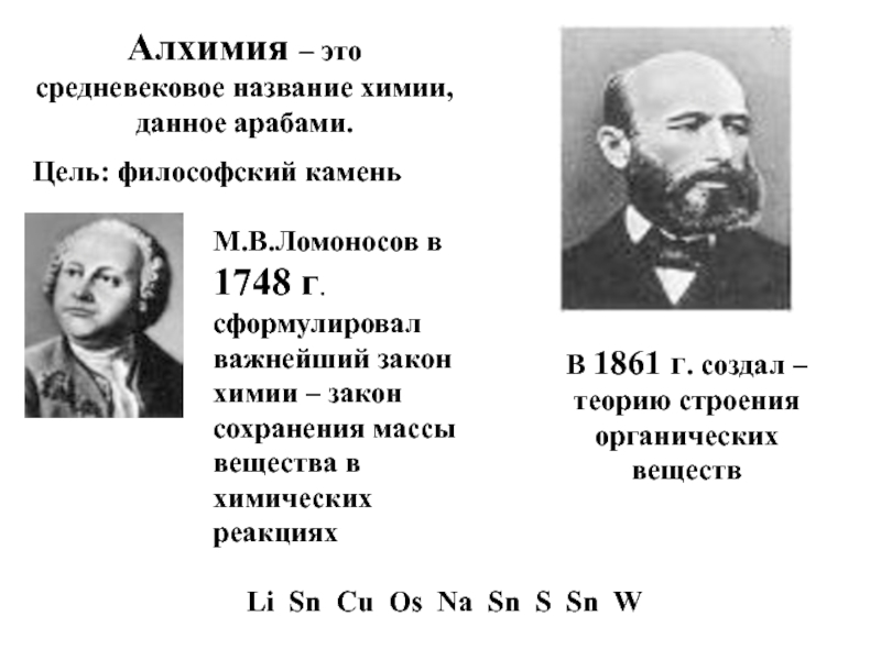 М.В.Ломоносов в 1748 г. сформулировал важнейший закон химии – закон сохранения массы вещества в химических реакциях