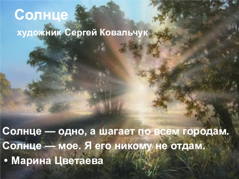 Слайд 11Солнце — одно, а шагает по всем городам.