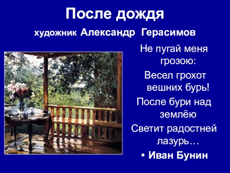 Слайд 2Хрупкий бисер дождя рассыпается в лужах на части,