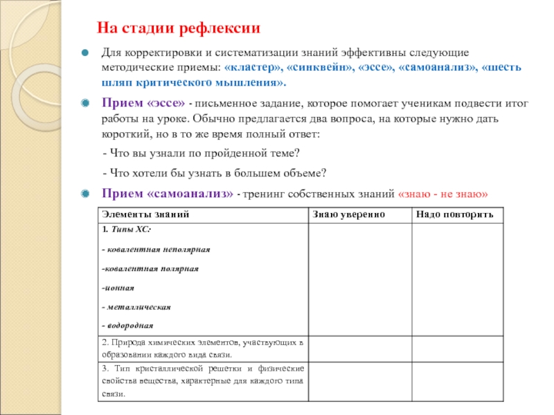 Прием «самоанализ» - тренинг собственных знаний «знаю - не знаю»
