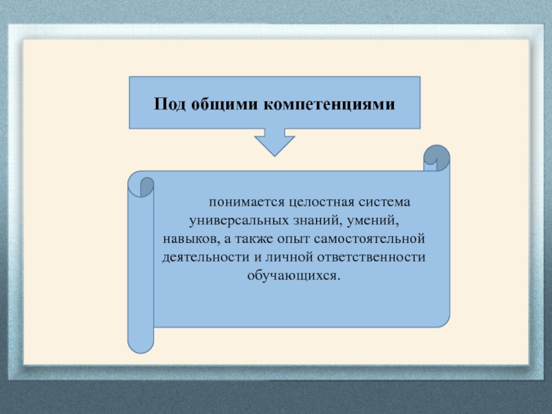 Под общими компетенциями  понимается целостная система универсальных знаний, умений, навыков, а также опыт самостоятельной деятельности