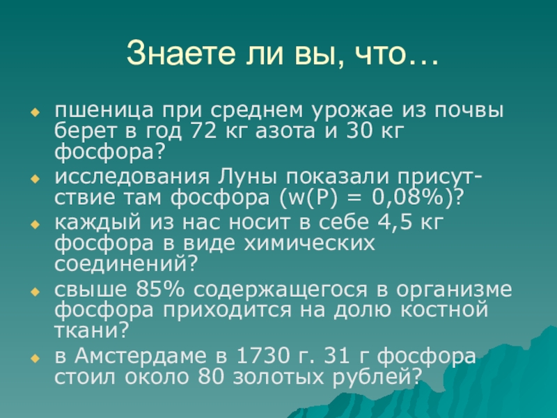 каждый из нас носит в себе 4,5 кг фосфора в виде химических соединений?
