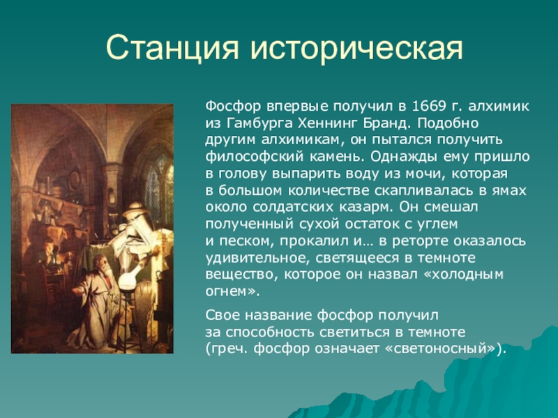 Фосфор впервые получил в 1669 г. алхимик из Гамбурга Хеннинг