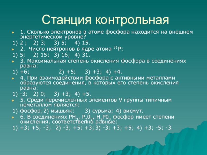 1. Сколько электронов в атоме фосфора находится на внешнем энергетическом