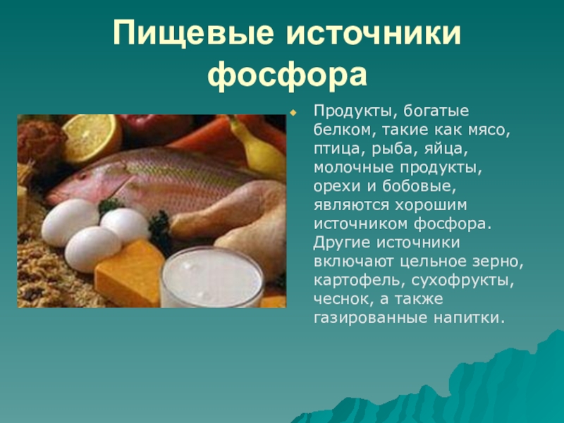 Слайд 18Пищевые источники фосфора
