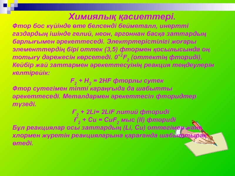 Химиялық қасиеттері.