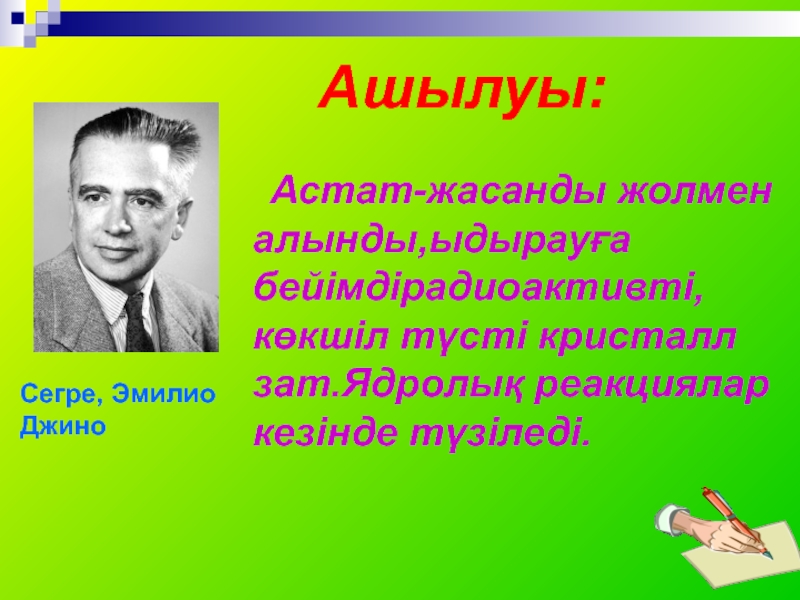 Астат-жасанды жолмен алынды,ыдырауға бейімдірадиоактивті,