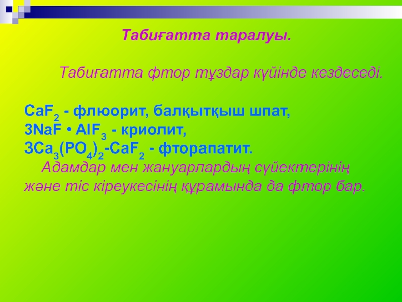 Табиғатта фтор тұздар күйінде кездеседі.