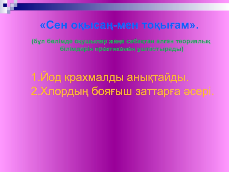 1.Йод крахмалды анықтайды.