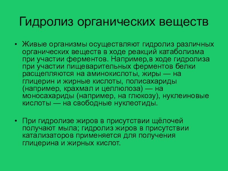 Слайд 8Гидролиз органических веществ