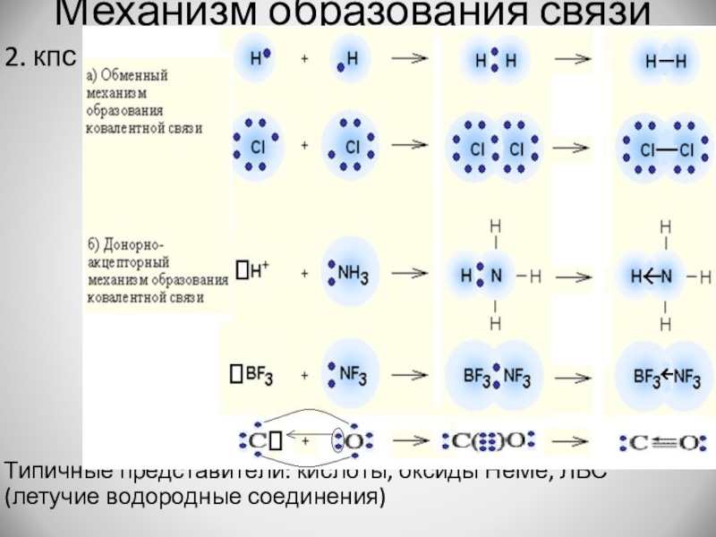 Механизм образования связи2. кпсТипичные представители: кислоты, оксиды НеМе, ЛВС (летучие водородные соединения)