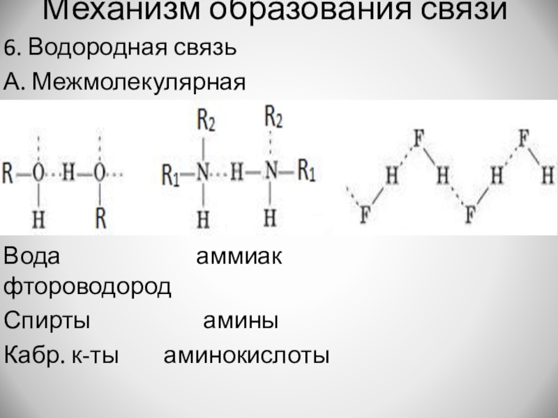 Механизм образования связи6. Водородная связьА. Межмолекулярная Вода