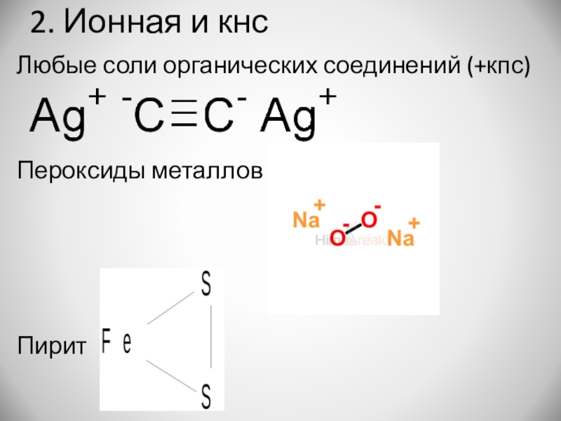 2. Ионная и кнсЛюбые соли органических соединений (+кпс) Пероксиды металловПирит