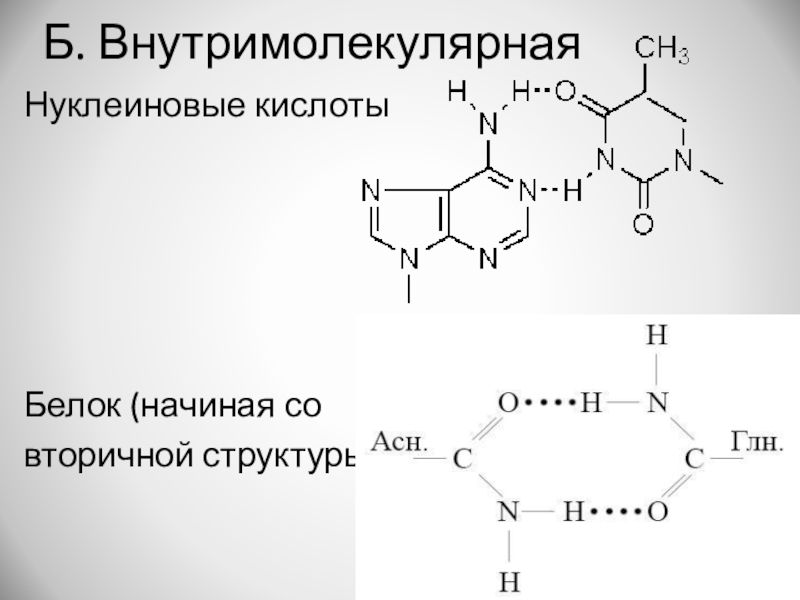 Б. ВнутримолекулярнаяНуклеиновые кислотыБелок (начиная совторичной структуры)