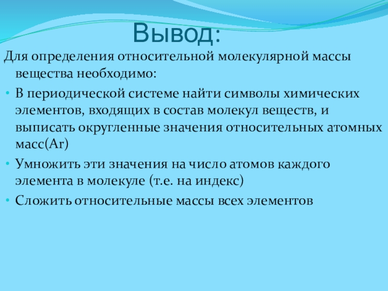Количественный состав вещества показывает число атомов каждого элемента в его составе. Например химическая формула (читается как «аш - два – о»)