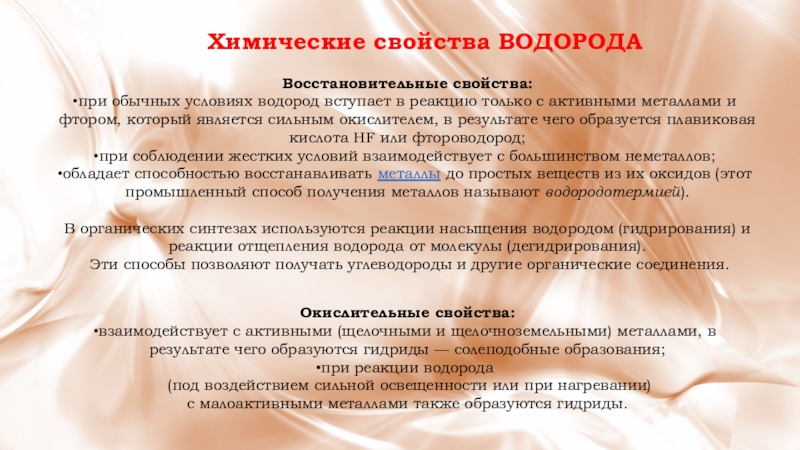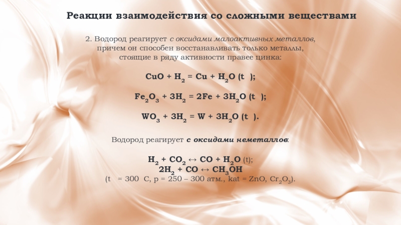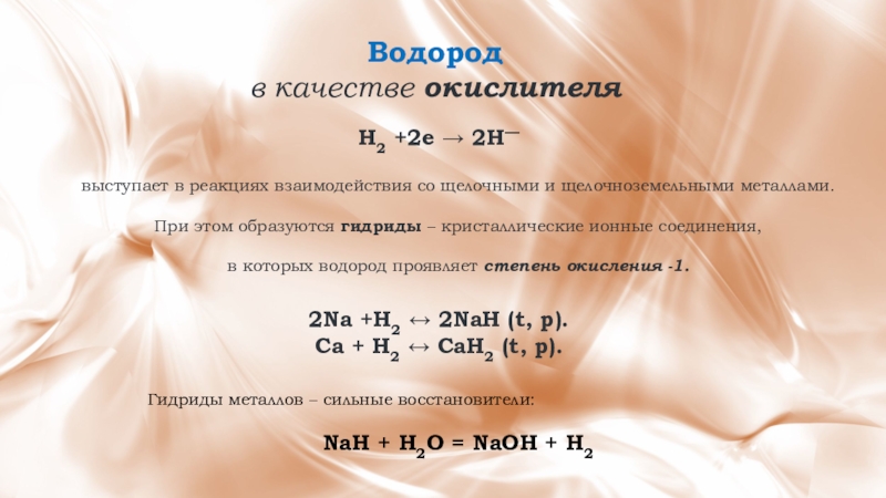 взаимодействует с активными (щелочными и щелочноземельными) металлами, в результате чего образуются гидриды — солеподобные образования;