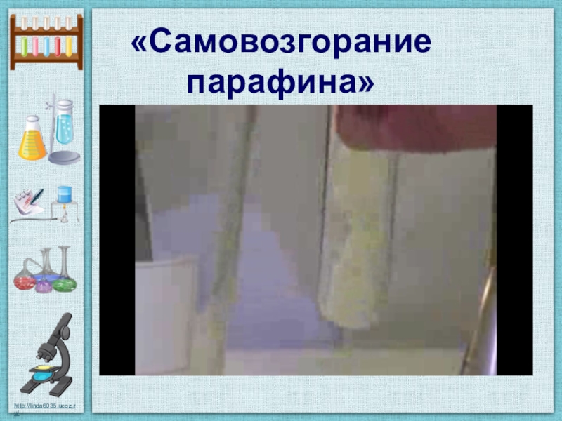 самовозгорание парафина. http://files.school-collection.edu.ru/dlrstore/22ae4713-529a-3cc8-3b9a-904ea7e42dd6/075.wmv