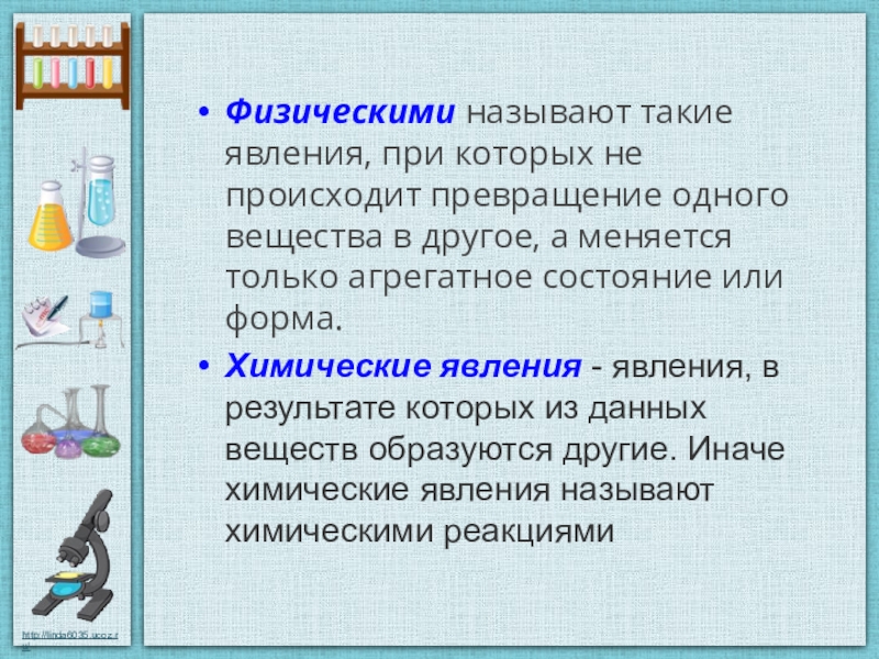 явлениях; показать какие признаки позволяют отличить физические явления от химических;