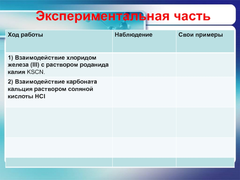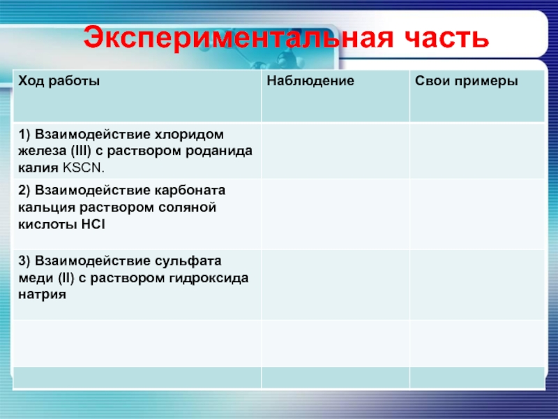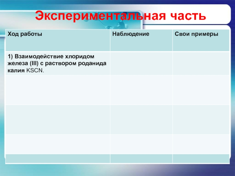 1 опытВ первом опыте нужно выяснить,  что происходит с хлоридом железа (III) при добавлении к нему