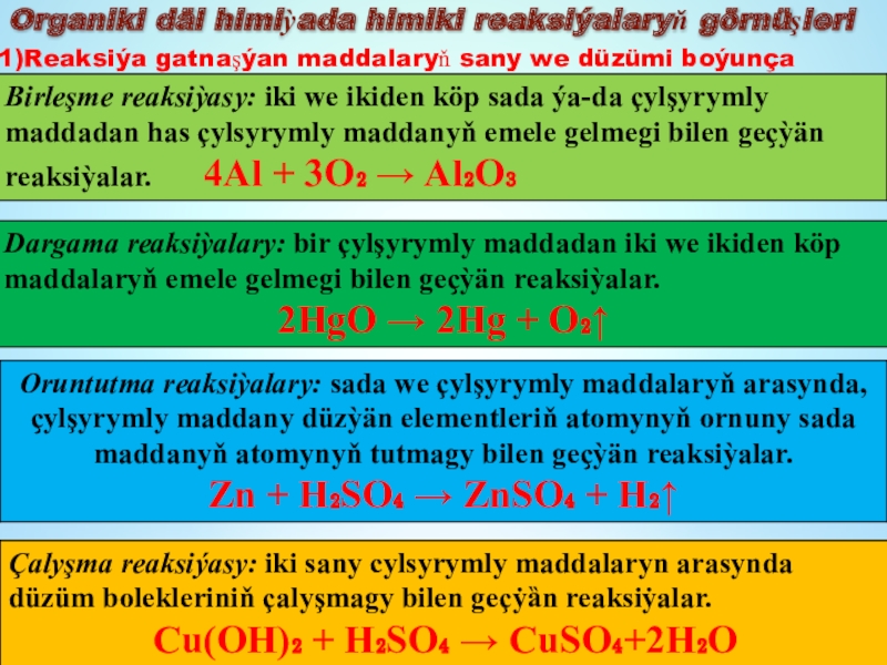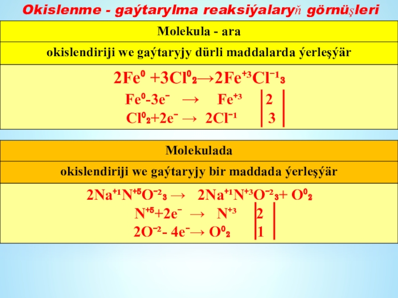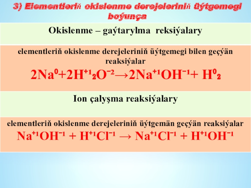 Okislenme - gaýtarylma reaksiýalary - elementleriñ okislenme derejeleriniñ üýtgemegi bilen geçýän reaksiýalar.