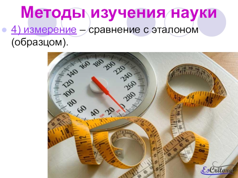 Методы изучения науки4) измерение – сравнение с эталоном (образцом).