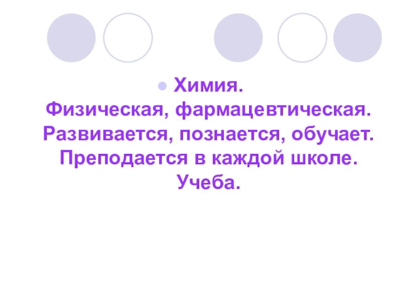 Химия. Физическая, фармацевтическая. Развивается, познается, обучает. Преподается в каждой школе. Учеба.