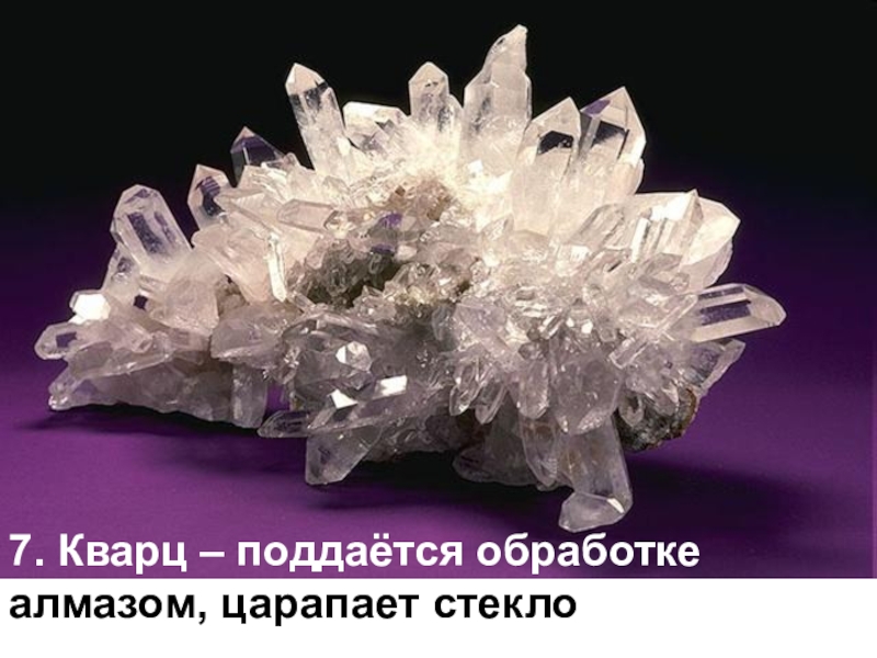 7. Кварц – поддаётся обработке алмазом, царапает стекло