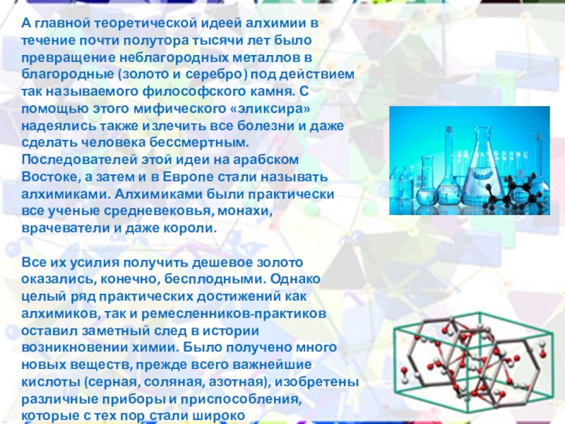 Слайд 6А главной теоретической идеей алхимии в течение почти полутора тысячи лет