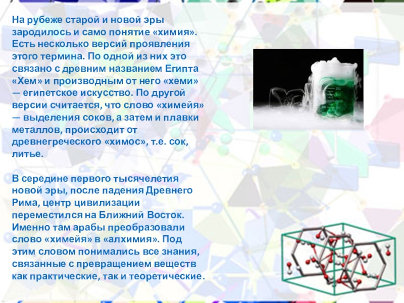 Слайд 5На рубеже старой и новой эры зародилось и само понятие «химия».