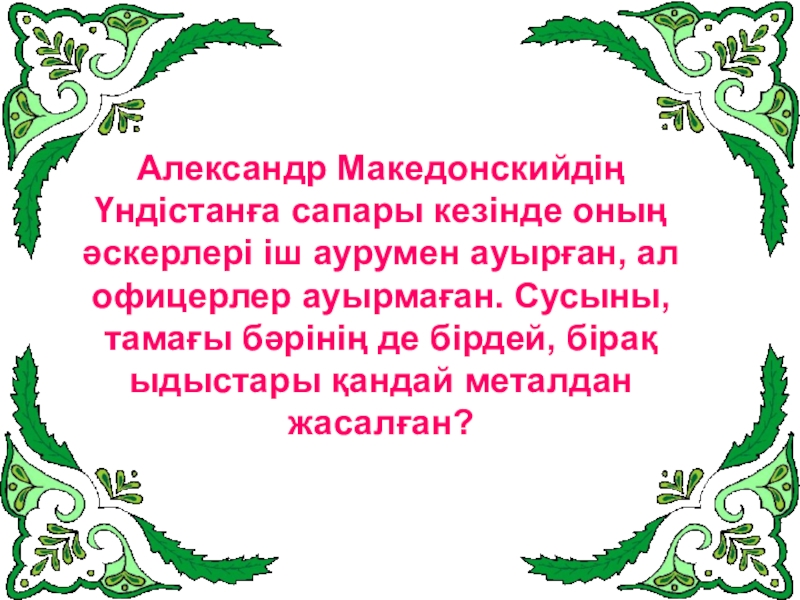 Слайд 20Александр Македонскийдің Үндістанға сапары кезінде оның әскерлері іш аурумен ауырған, ал