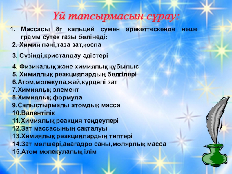 Үй тапсырмасын сұрау: