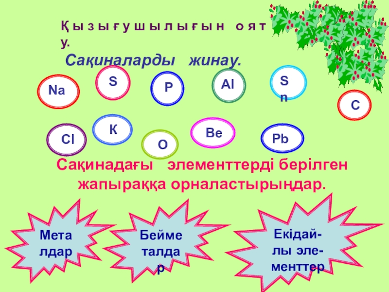 Сақинадағы элементтерді берілген жапыраққа орналастырыңдар.