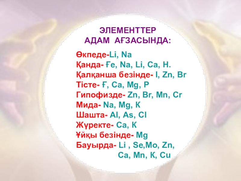 Бауырда- Lі , Sе,Мо, Zn,