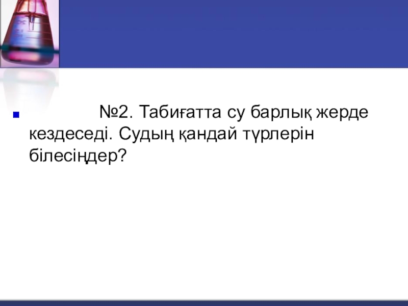 №2. Табиғатта су барлық жерде кездеседі. Судың қандай түрлерін білесіңдер?