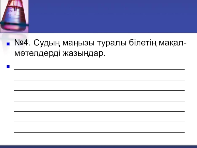 №4. Судың маңызы туралы білетің мақал-мәтелдерді жазыңдар._____________________________________________________________________________________________________________________________________________________________________________________________________________________________________________________