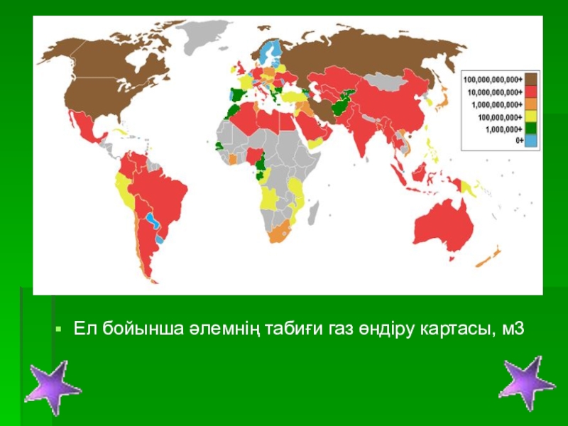 Слайд 7Ел бойынша әлемнің табиғи газ өндіру картасы, м3