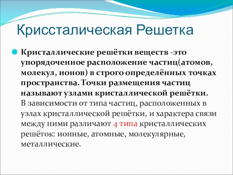 Ионными называют кристаллические решетки, в узлах которых находятся ионы. Их образуют вещества с ионной связью. Ионные кристаллические решётки имеют соли, некоторые оксиды и гидроксиды металлов.