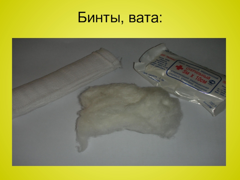 Перевязочные материалы ( вата, бинты, лейкопластырь).