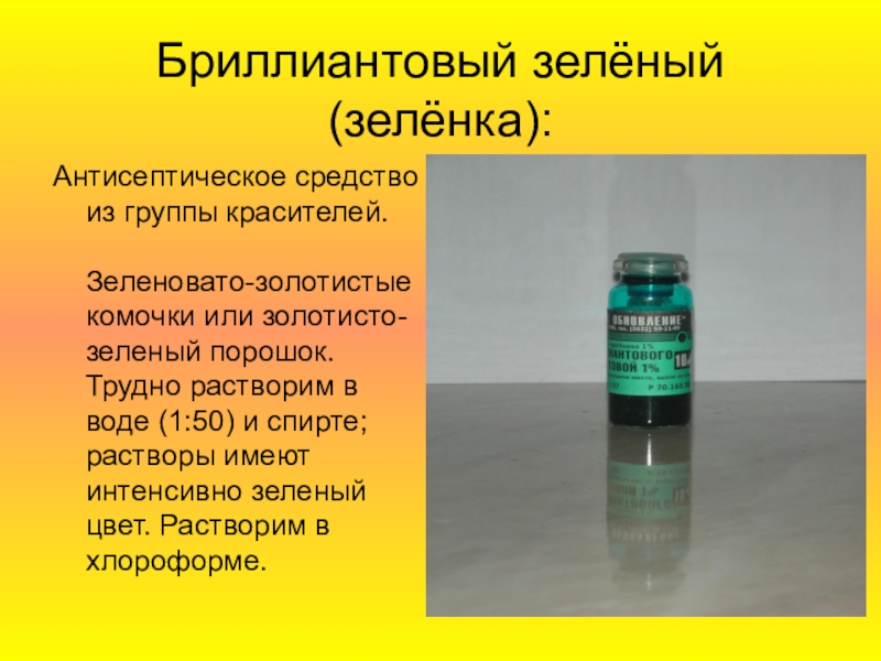 Слайд 6Бриллиантовый зелёный (зелёнка):