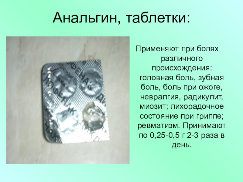 Применяют при болях различного происхождения: головная боль, зубная боль, боль